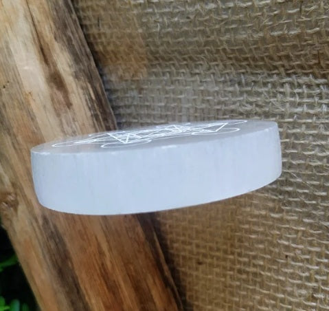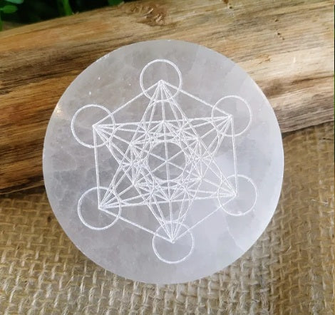 Base Redonda de Selenita Cubo Metatron - 7,5cm