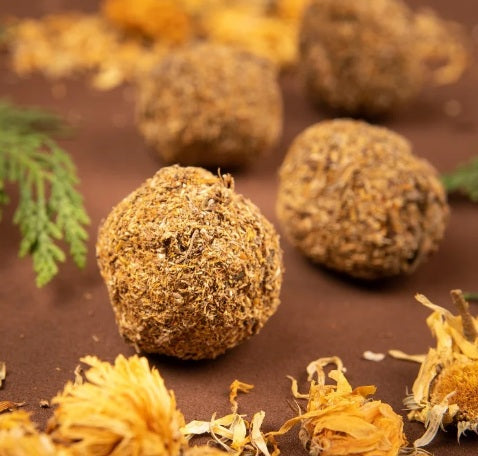 COMPOSIÇÃO: Flor de Calêndua, camomila, alecrim, contra erva, menta, arruda, cânfora, cedro e aglutinantes naturais.