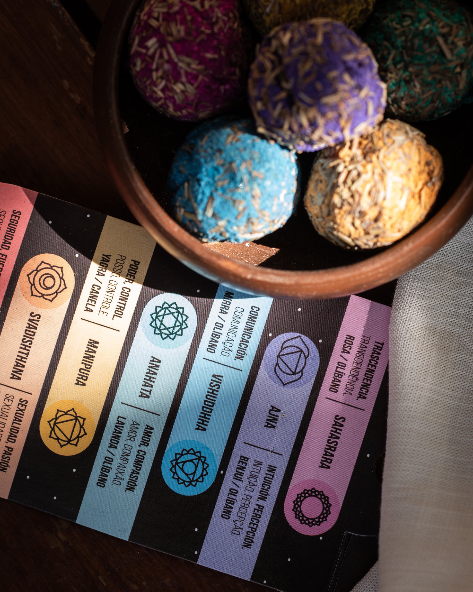 Cada bombita é cuidadosamente elaborada para alinhar e purificar os sete centros energéticos do corpo, promovendo bem-estar físico, mental e espiritual. Ao acender, libera uma fumaça aromática que limpa, energiza e harmoniza o ambiente — perfeita para rituais, meditações ou momentos de reconexão com o seu eu interior.