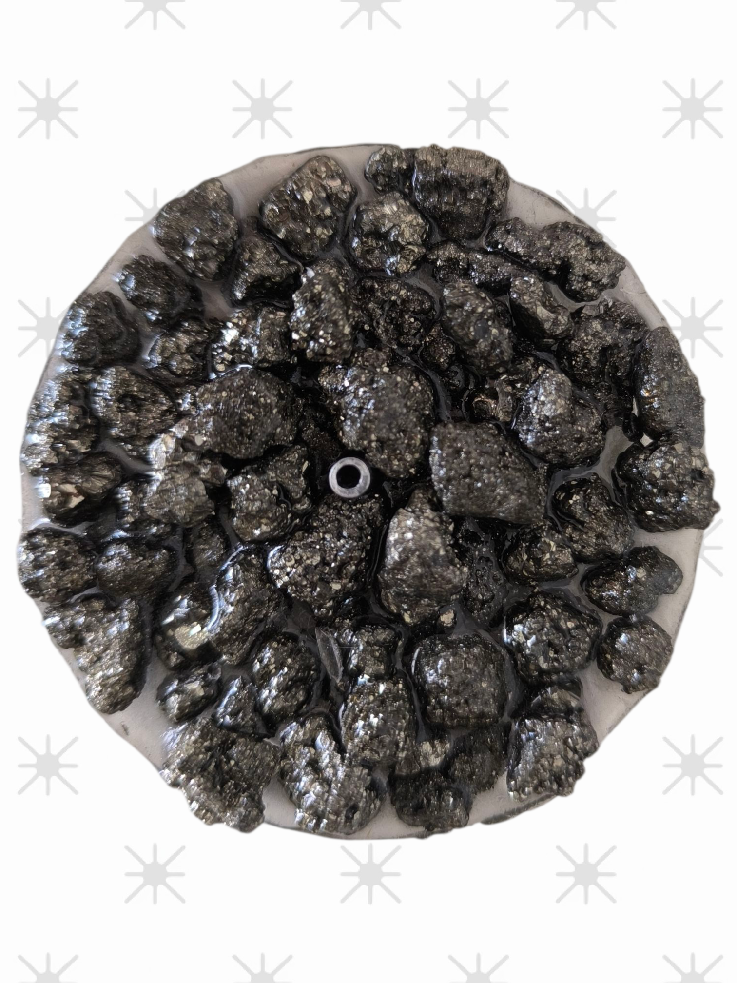 Incensário resina com pedra bruta pirita -A Pedra da Prosperidade