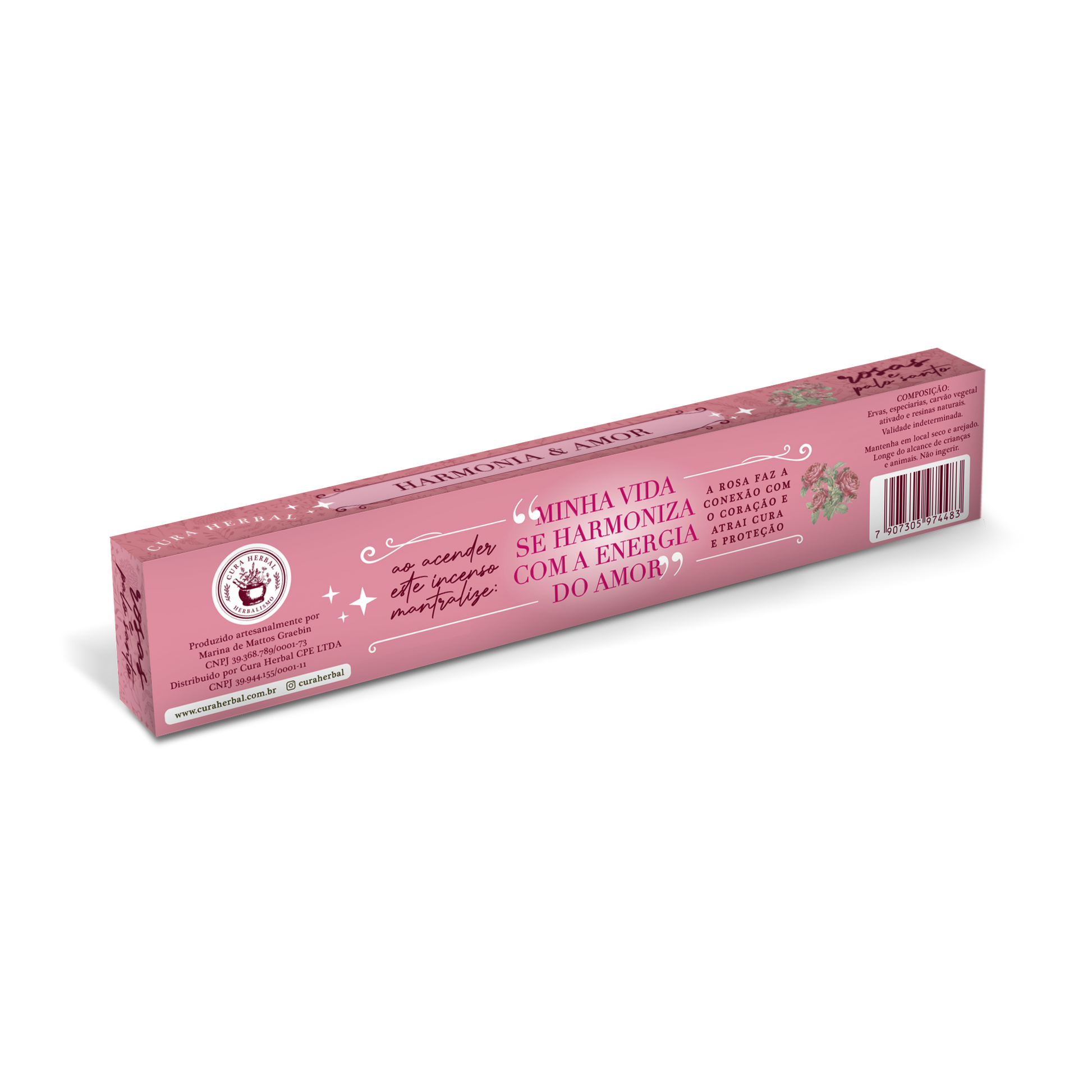Incenso Harmonia & Amor Rosas e Palo Santo Cura Herbal
