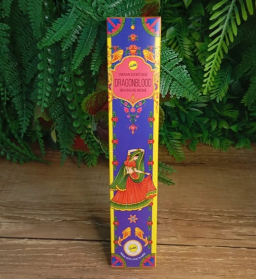 O incenso Sree Vani Indian Heritage - Dragon Blood é uma escolha poderosa e mística, amplamente reconhecida por suas propriedades de purificação e proteção energética. Seu aroma intenso e resinoso é ideal para criar uma atmosfera de força e renovação, sendo frequentemente utilizado em rituais espirituais e práticas meditativas.