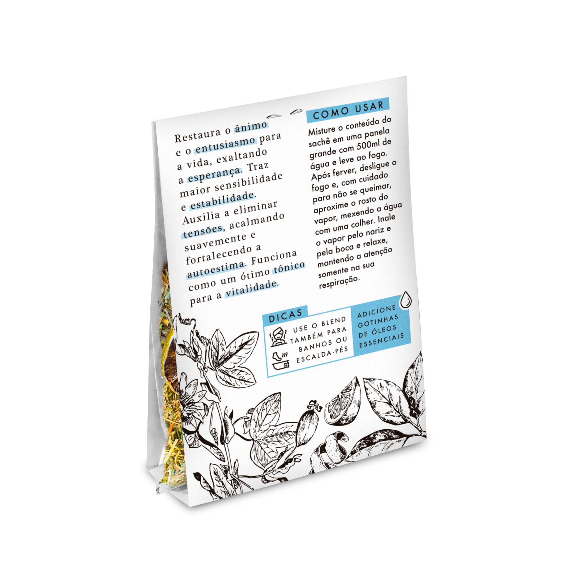 Como usar:Misture o conteúdo do sachê em uma panela grande com 500ml de água e leve ao fogo. Após ferver, desligue o fogo e, com cuidado para não se queimar, aproxime o rosto do vapor, mexendo a água com uma colher. Inale o vapor pelo nariz e pela boca e relaxe, mantendo a atenção somente na sua respiração.