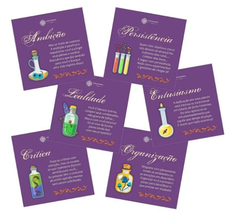 Os oráculos servem para revelar o futuro em nossas vidas, nos permitindo ter uma boa visão e percepção sobre tais coisas que podem vir acontecer. O Oráculo Poções Mágicas é composto por 100 cartas com mensagens de reflexão para o bem-estar e a orientação. Ao jogar as Cartas de forma aleatória, adquirimos respostas para diferentes questões importantes em todas as áreas de nossas vidas.