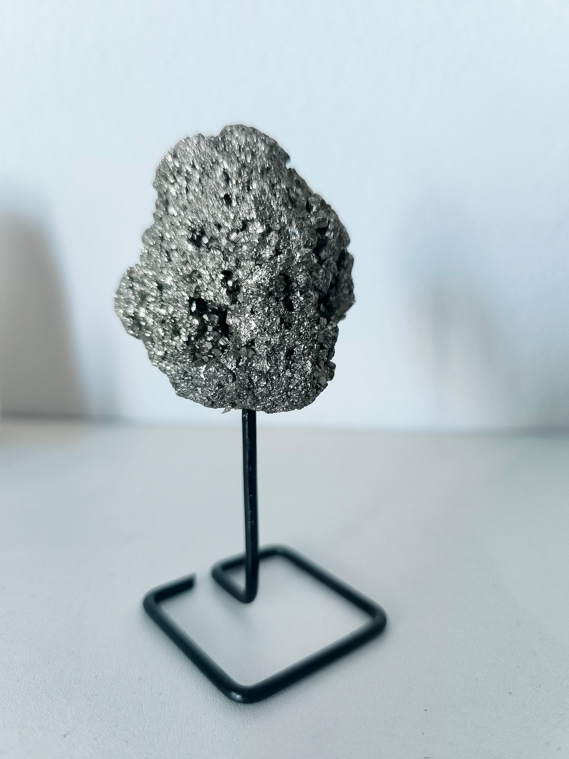 Com sua energia firme, a Pirita simboliza estrutura, segurança, raciocínio lógico e pé no chão, ao mesmo tempo em que estimula a criatividade, inspiração, memória e maturidade. É também uma poderosa aliada da autoconfiança, autoestima e proteção energética, graças ao enxofre presente em sua composição natural.