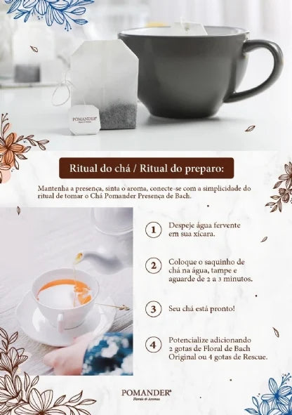 Transforme seus dias com o Pomander Chá Presença de Bach Transforme os seus Medos. Um momento de autocuidado que inspira coragem, revitaliza e proporciona bem-estar.