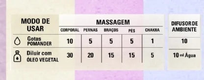 - Massagem: Dilua algumas gotas em óleo vegetal ou creme neutro para uma massagem relaxante no corpo ou na sola dos pés.